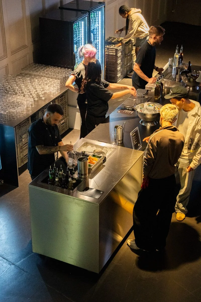 We start with the mobile bar stations, once they are setup we manage the rest of the space in the best possible way. Our setups are flexible, we shape the backbar to fit the space and add branding to your liking, and build a flow that makes sense for the event. It’s never one-size-fits-all. Sometimes that means a clean, compact station for a private tasting; other times, a full build-out with extra fridges, ice wells, and space for high-volume service. We always bring what’s needed. Nothing more, nothing less. It’s about making the whole thing feel right.